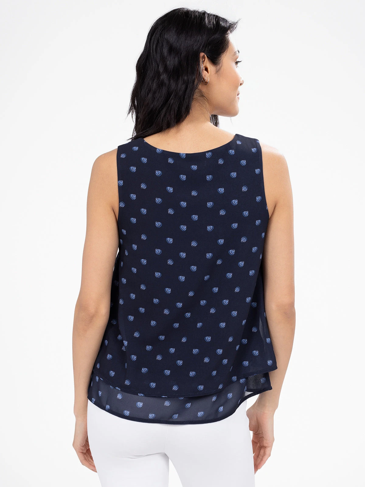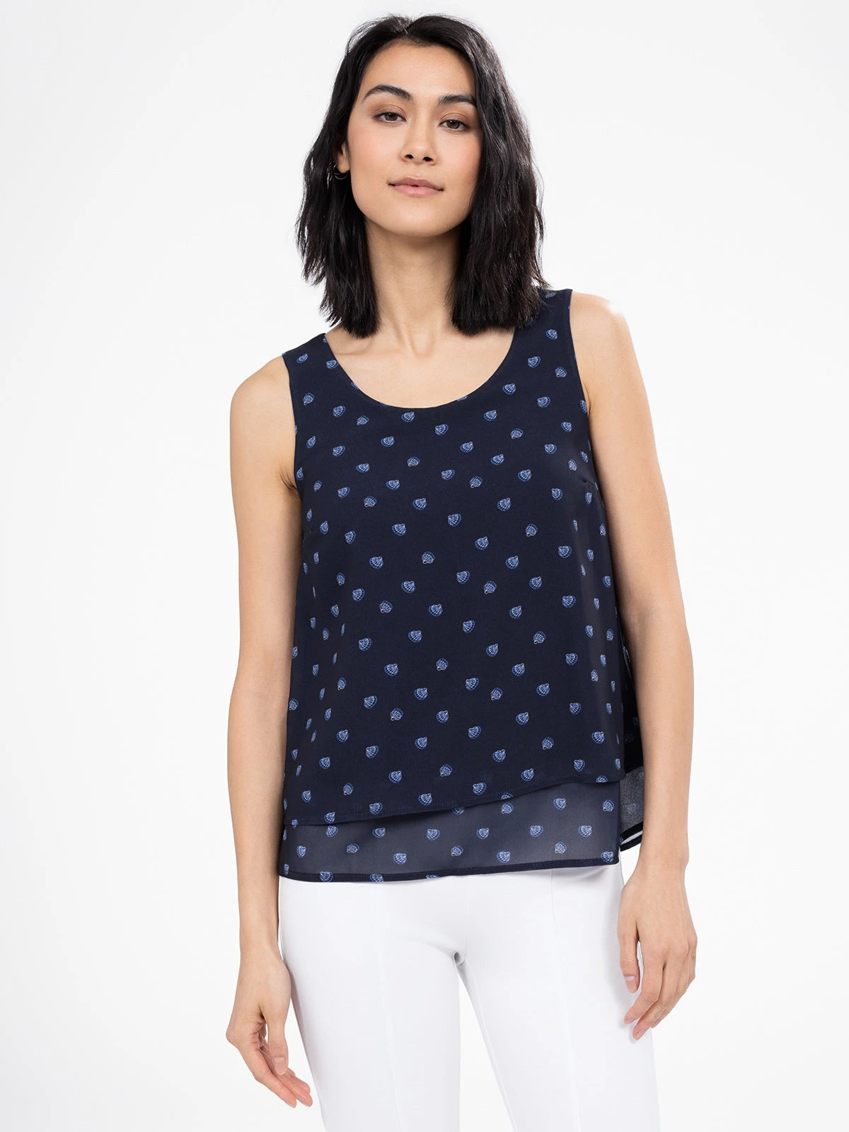 Avec ses motifs subtils et sa coupe évasée, cette camisole allie confort et fluidité. Les détails transparents soulignent une silhouette tout en légèreté.
