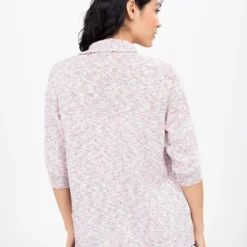 Ce cardigan en maille lĂ©gĂšre se pare dâun subtil effet chinĂ©, apportant du relief Ă sa texture douce. Son col chĂąle et ses manches trois-quarts lui confĂšrent une allure dĂ©contractĂ©e.