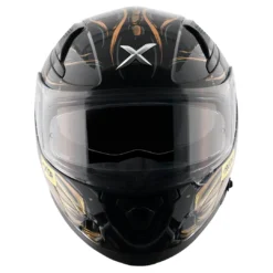 The AXOR Hunter helmet is designed for riding enthusiasts, offering ISI, DOT, and ECE 22.06 certifications for top-tier safety. It features a scratch-resistant, UV-resistant visor with a quick-release mechanism for easy changes and a visor lock button for added security. Equipped with a D-ring buckle for a snug fit, the helmet ensures optimal comfort with side, front, and mouth vents for superior ventilation. A ducktail spoiler enhances aerodynamics, while reflectors on the sides and back improve visibility for safer day and night rides. Includes an anti-fog film Pinlock 30 that helps prevent visor fogging, ensuring clear vision while riding.