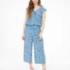 Coupe droite à longueur cheville avec ourlets francs et motif floral imprimé sur les côtés.