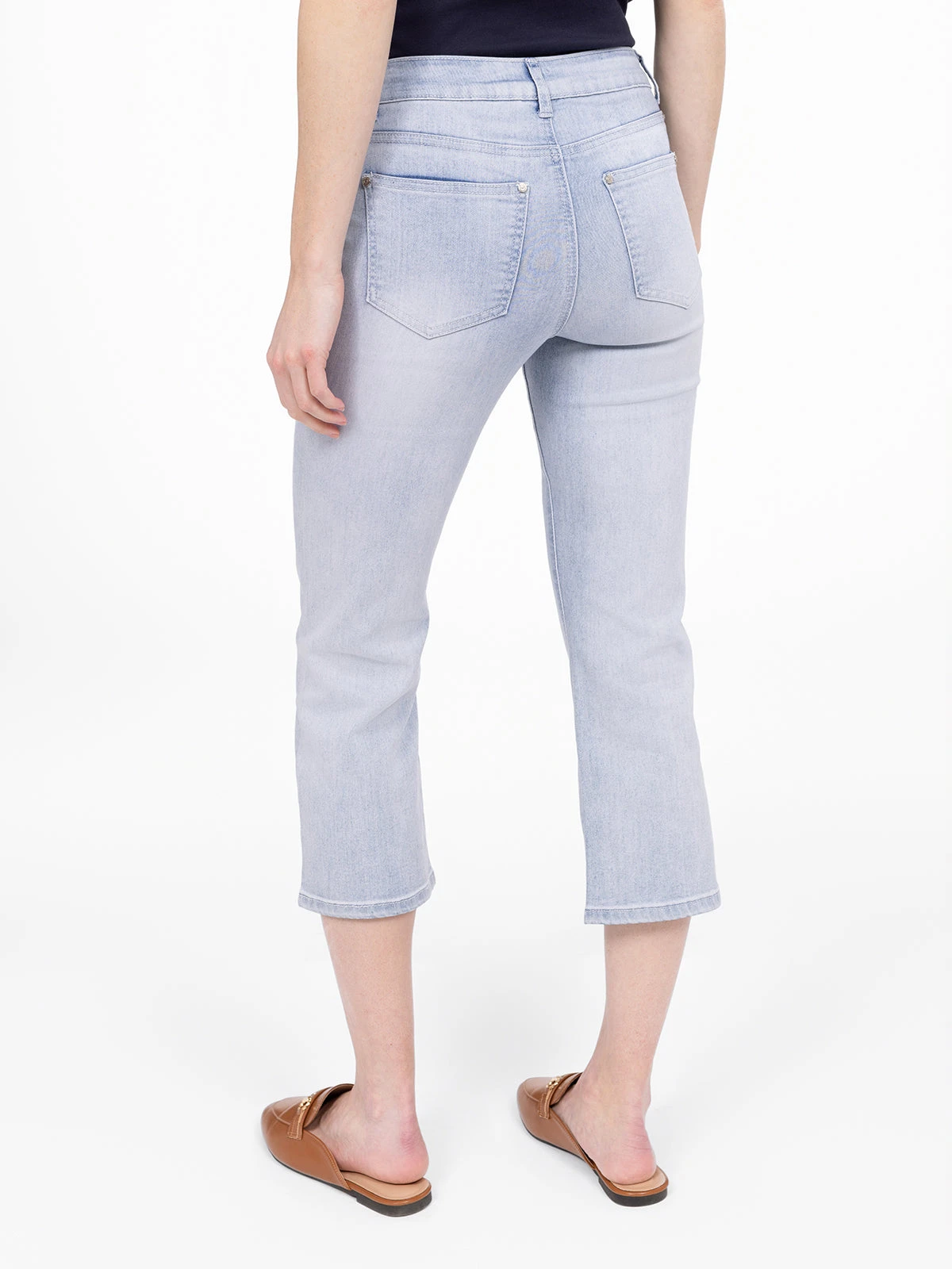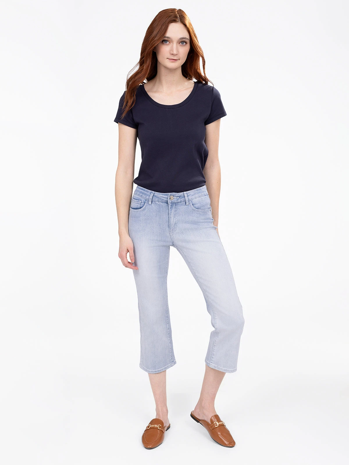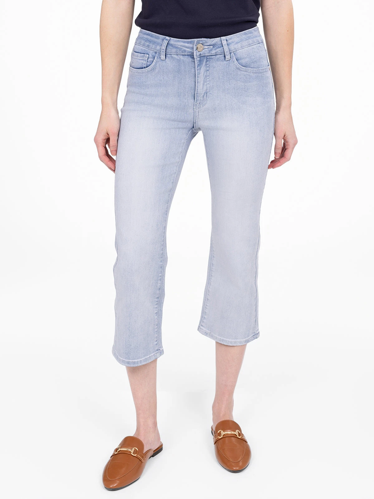 Ce jean capri dévoile une coupe légèrement évasée, parfaite pour une silhouette fluide et décontractée. Son denim souple assure un porté agréable au quotidien.