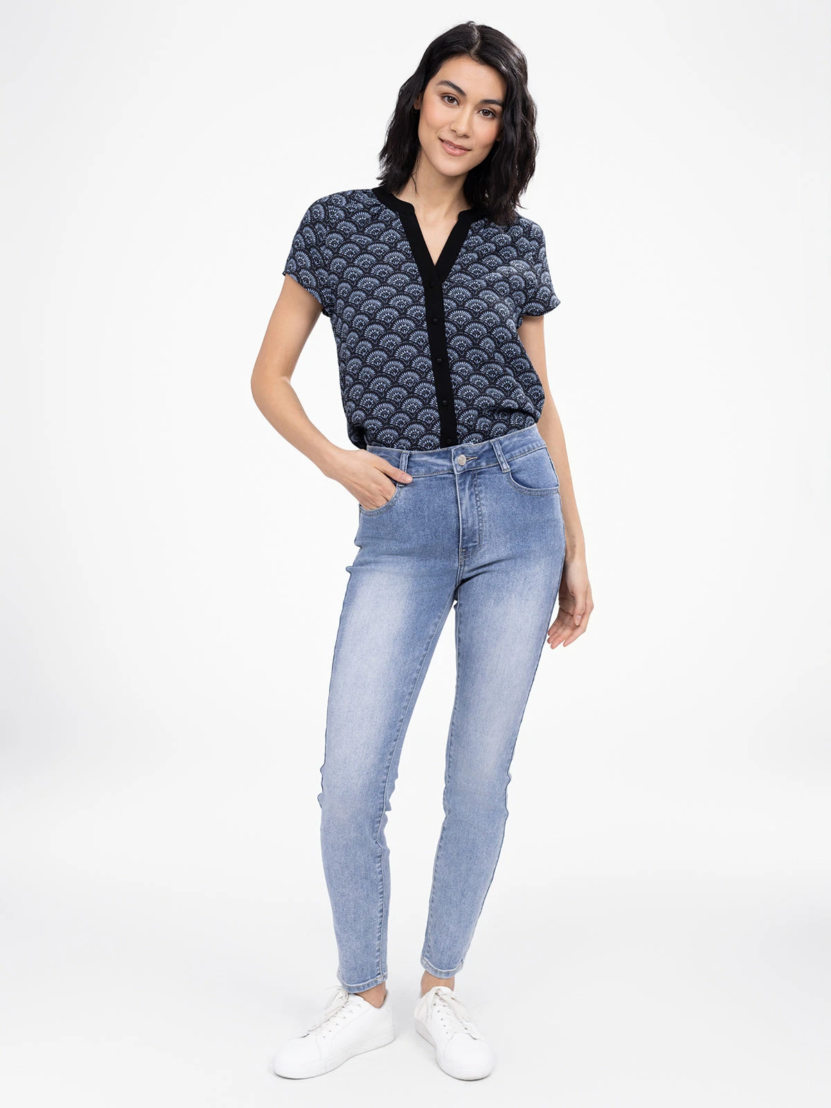 Dâune ligne Ă©purĂ©e et dâun bleu profond, ce jean affine la silhouette avec un tombĂ© parfait. Sa taille haute assure un maintien idĂ©al, rehaussant chaque tenue avec simplicitĂ©.