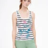 Jupe courte évasée à taille élastiquée avec lien de serrage et volant plat en bas. Le tissu léger est imprimé d’un motif floral régulier sur toute la surface.