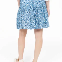 Jupe courte à volume dansant, montée sur une ceinture élastique plate à la taille et structurée par une découpe horizontale froncée. Le tissu fluide est rehaussé d’un imprimé fleuri dense et de fronces fines qui amplifient le mouvement à chaque pas.