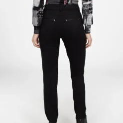 Pantalon droit près du corps en matière suédée, muni de deux poches avant zippées et deux poches arrière plaquées. Ceinture avec passants et fermeture classique par bouton et fermeture éclair.