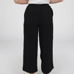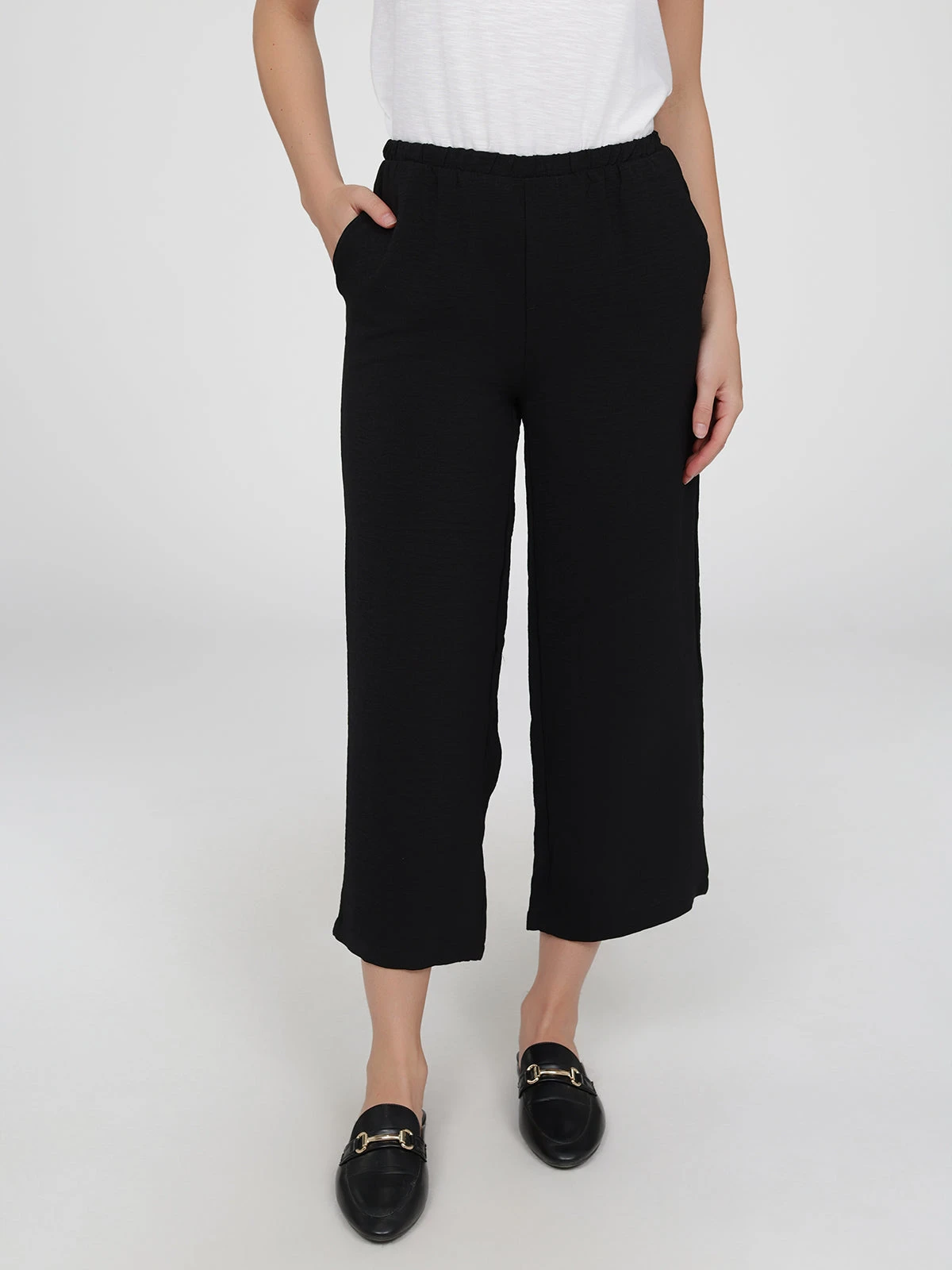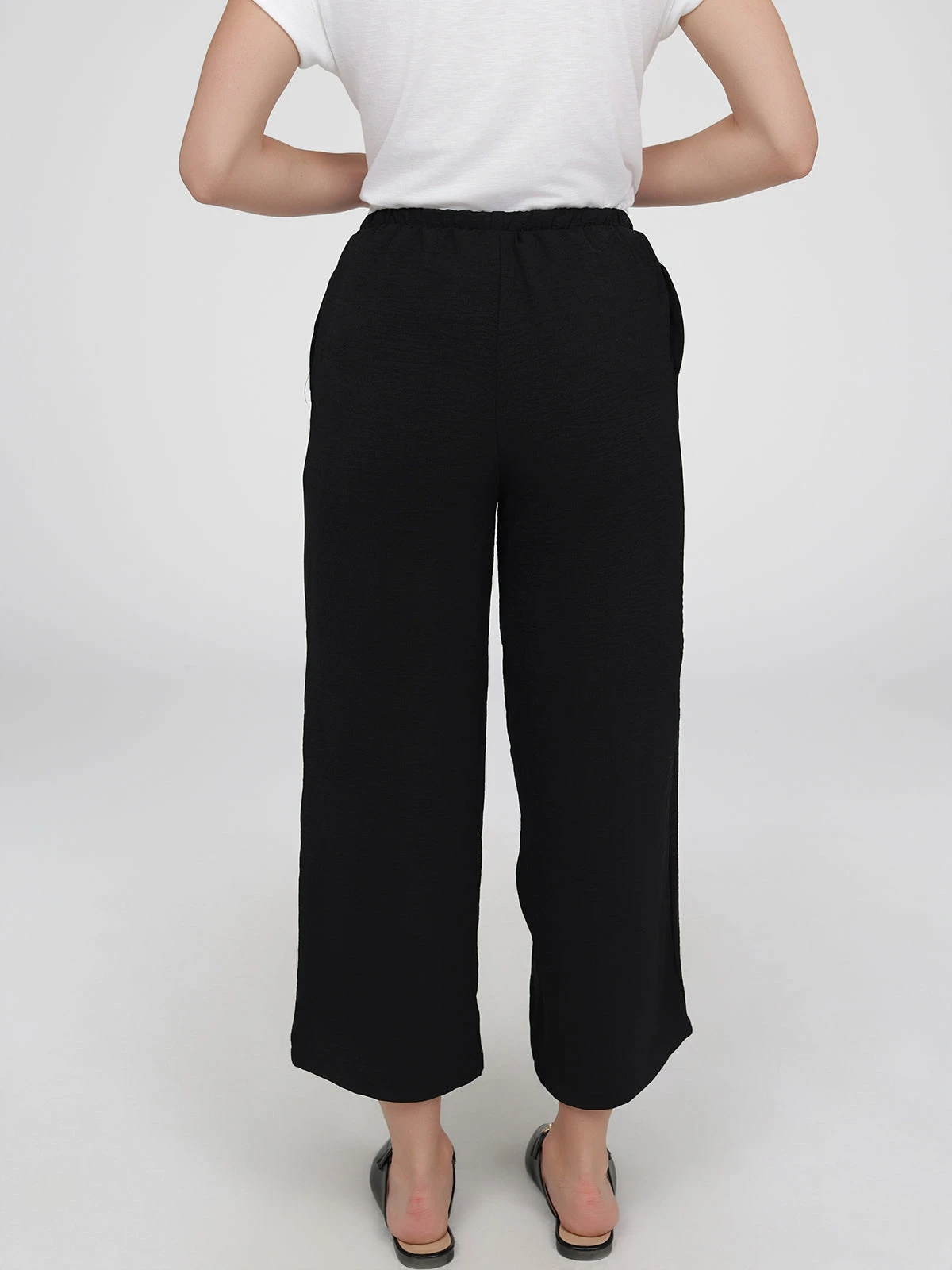 Pantalon à coupe large et jambe droite, longueur 7/8. Modèle à enfiler, avec bande de taille extensible.
