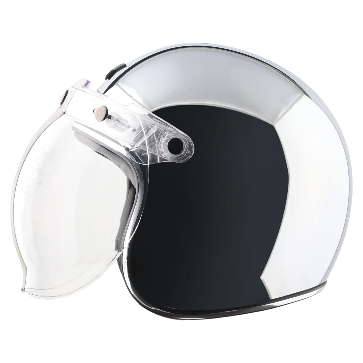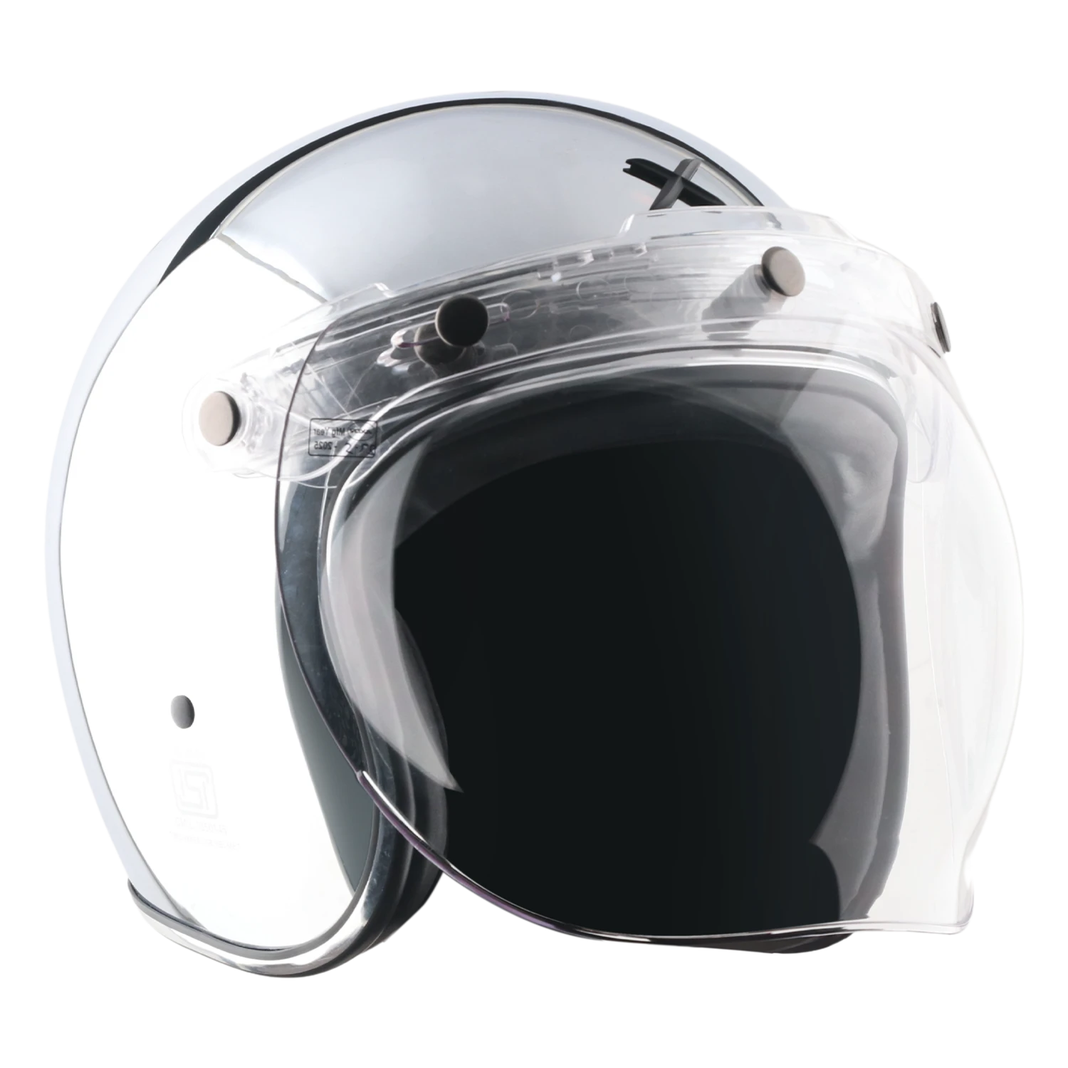 Experience timeless style with the Retro Jet Chrome – the lightest helmet in our Retro Jet series. Featuring a sleek chrome metallic finish, plush leather interiors, and a clear visor for added protection, this open-face unisex helmet perfectly blends classic aesthetics with modern comfort and safety.