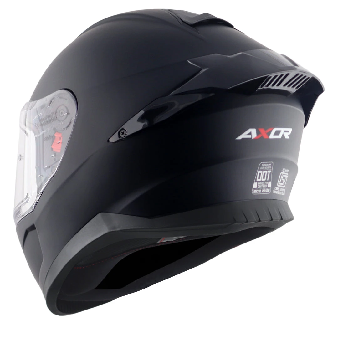 Keeping safety in mind the saber helmet holds the prestigious ISI, DOT, and ECE 22.06 certifications, providing you the confidence that it meets rigorous safety standards, whether you’re riding through city streets or facing challenging terrains. The visor of our helmet is not just a shield; it’s a window to clarity and comfort as it gives you 70% wider vision & it is scratch-resistant , ensuring a clear view of the road ahead. The Saber has a secure closure system, easy visor mechanism, and Micrometric chin strap functionality. The helmet features strategically placed mouth vents, front vents, and back exhaust vents, ensuring optimal airflow to keep you comfortable in any weather condition. Comes equipped with a spoiler for streamlined presentation and stability at high speeds. Whether you’re a seasoned rider or just starting your journey, trust AXOR to keep you protected.