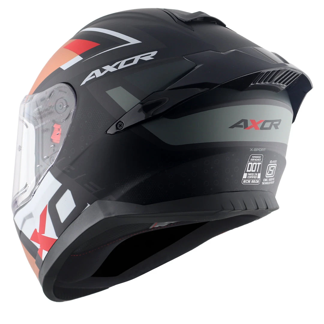 Keeping safety in mind the saber helmet holds the prestigious ISI, DOT, and ECE 22.06 certifications, providing you the confidence that it meets rigorous safety standards, whether you’re riding through city streets or facing challenging terrains. The visor of our helmet is not just a shield; it’s a window to clarity and comfort as it gives you 70% wider vision & it is scratch-resistant, ensuring a clear view of the road ahead. The Saber has a secure closure system, easy visor mechanism, and Micrometric chin strap functionality. The helmet features strategically placed mouth vents, front vents, and back exhaust vents, ensuring optimal airflow to keep you comfortable in any weather condition. Comes equipped with a spoiler for streamlined presentation and stability at high speeds. Whether you’re a seasoned rider or just starting your journey, trust AXOR to keep you protected.