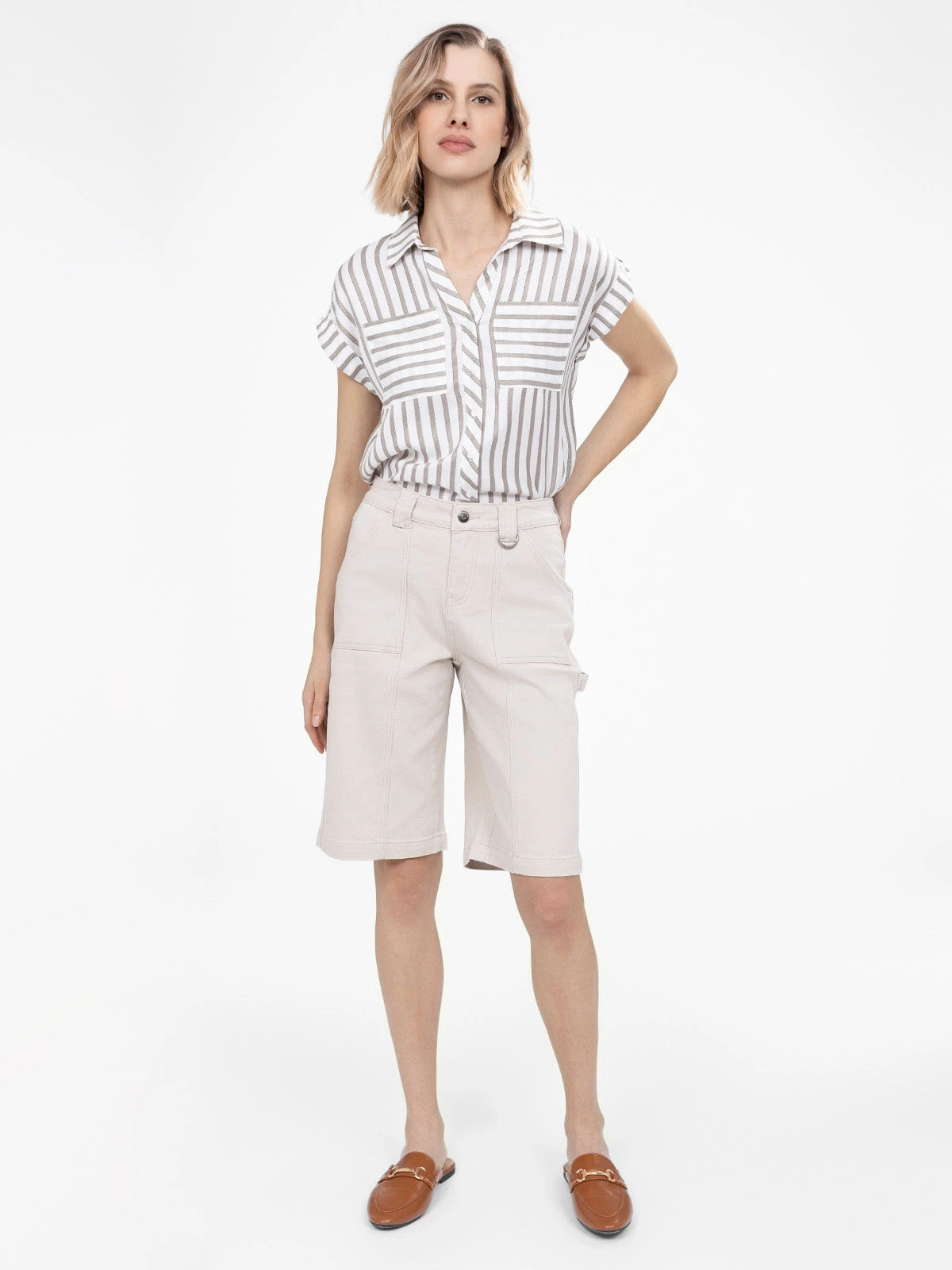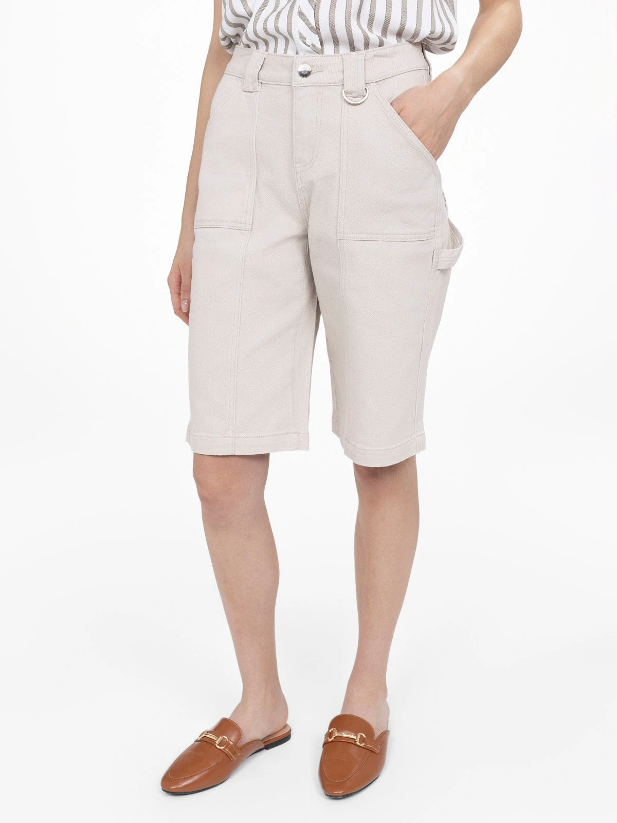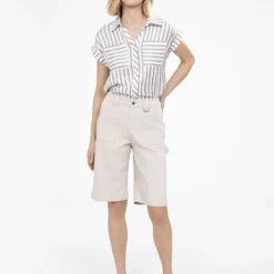 Ce short revisite l’esprit utilitaire avec ses grandes poches plaquĂ©es et son passant latĂ©ral inspirĂ© des pantalons cargo. Sa coupe droite structurĂ©e et sa matiĂšre rĂ©sistante en font un alliĂ© parfait pour un style pratique et tendance.