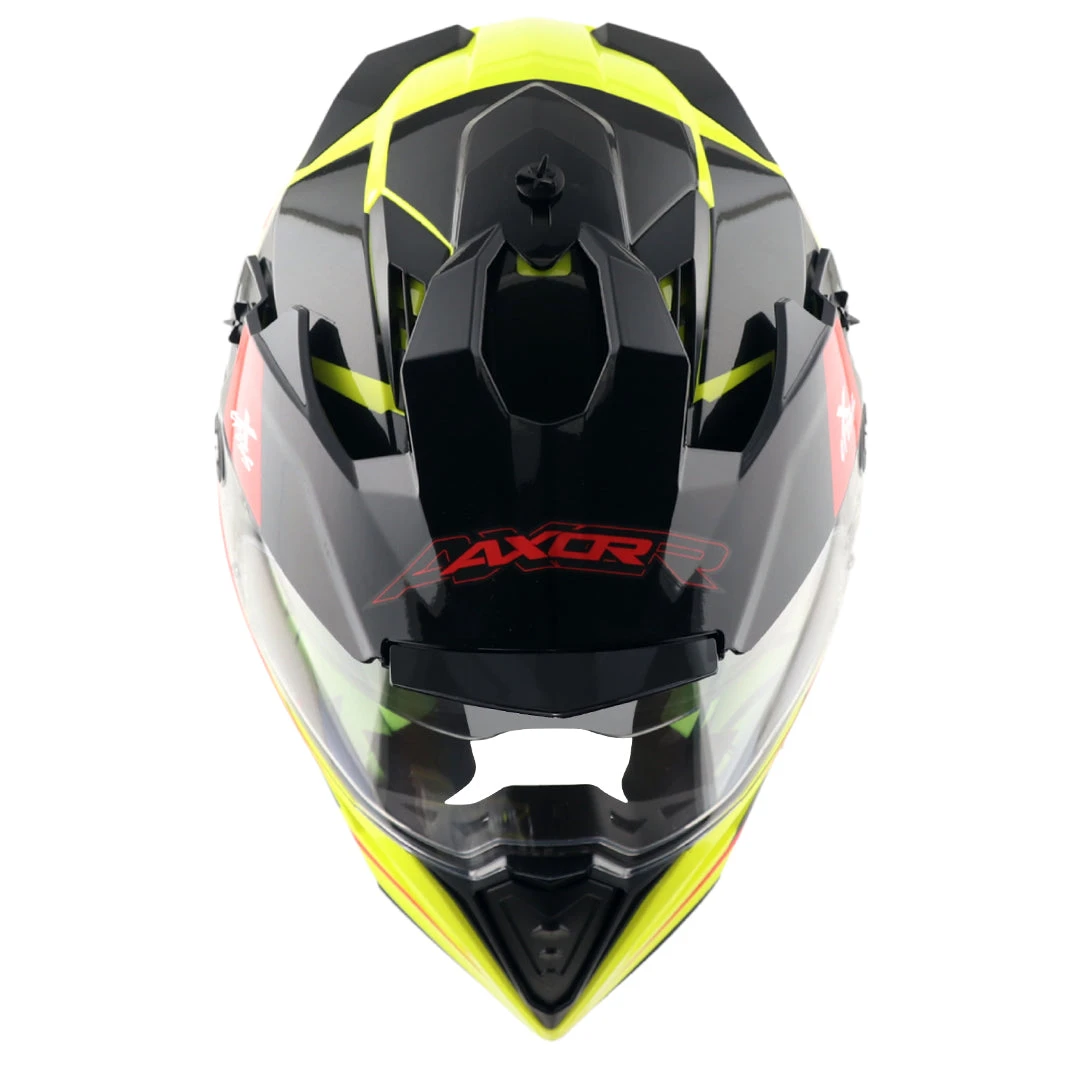 Gear up for your off-roading adventures with this premium off-road full-face helmet. Featuring a stylish peak and dual visor system, it includes an outer clear visor and inner smoke sun visor for versatile visibility. Engineered for all trails, the peak and shell provide durability and functionality. Equipped with Pinlock 70 compatibility, this helmet ensures clear vision in all conditions. Certified by ISI, DOT FMVSS NO. 218(US), and ECE 22.06 standards, it’s the ultimate choice for motorcycle enthusiasts seeking safety and style.